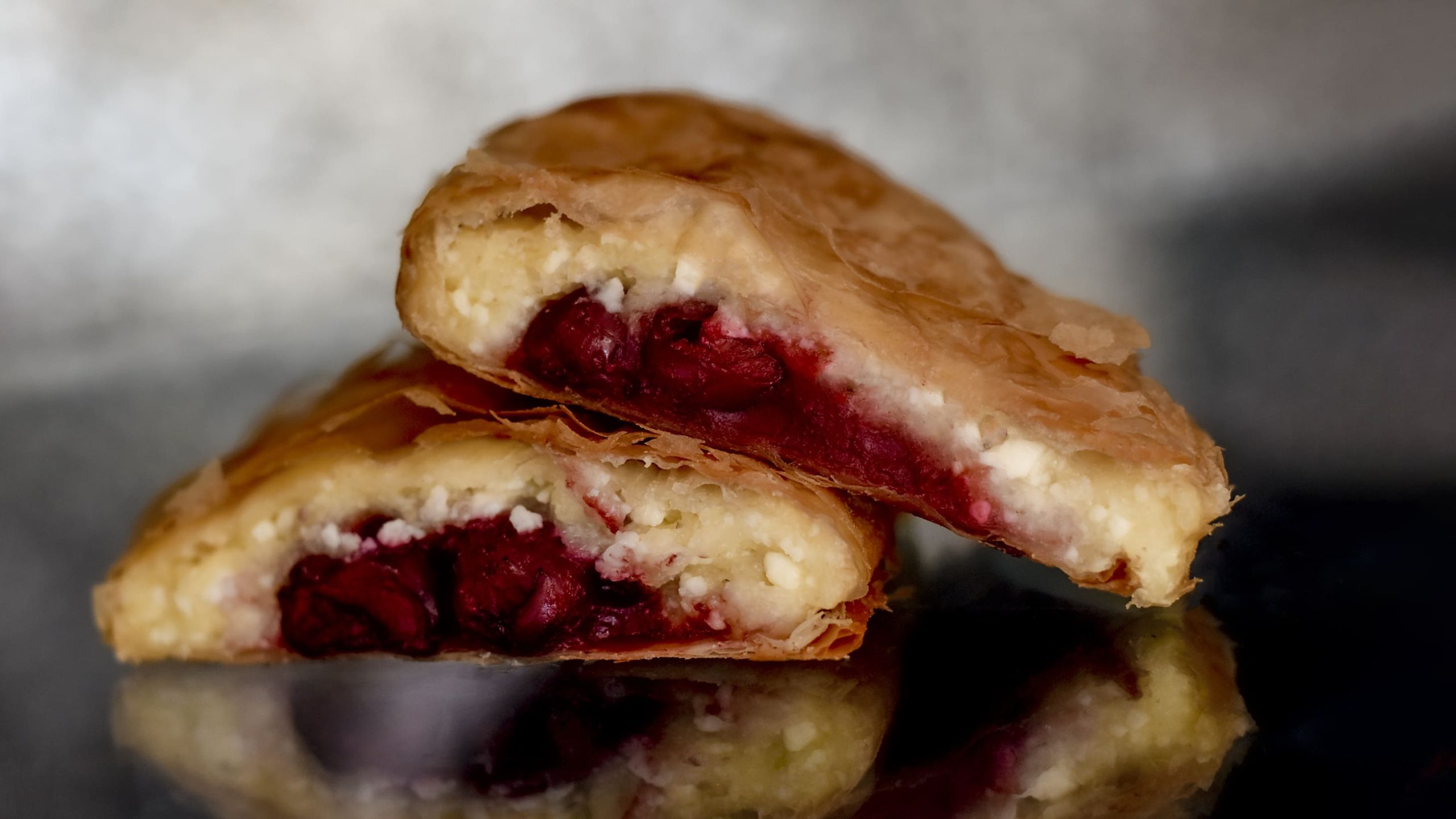 Cukormentes túrósmeggyes rétes édesítőszerrel készítve.
